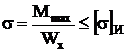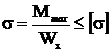 наиболее опасному сечению, где действует наибольший изгибающий момент