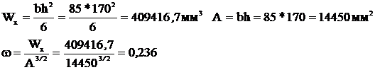 из стандартного ряда b=85мм и h=2*85=170мм.