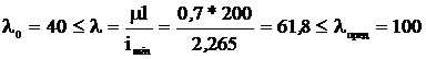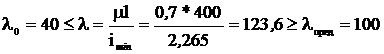 Определим значения длины и допускаемой нагрузки стойки при λ = λпред. и λ = λ0.