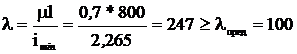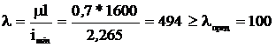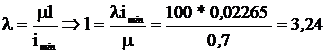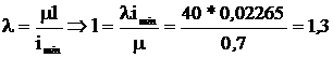 наименьший радиус инерции поперечного сечения стержня;- наименьший осевой
