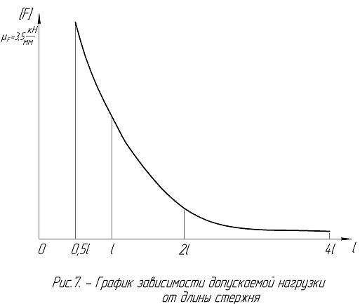 который показывает что при увеличении длины стержня, допускаемая нагрузка