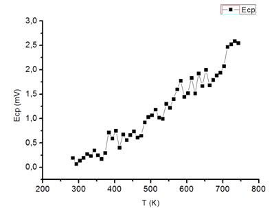 эдс термовольтаического эффекта синтезированного образца при Т=625 К и