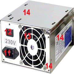 блок питания дает разное напряжение (12В, 5В, -5В, -12В, 3,3В, -3,3В), каждая