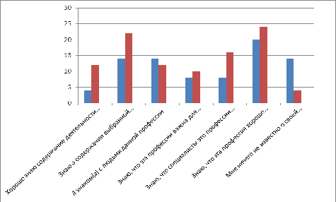 Примечание: ось абсцисс - варианты уровня знания о профессии,