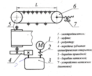 натяжным устройством. Разработана конструкция привода, подобраны: