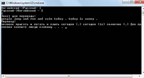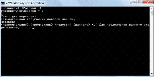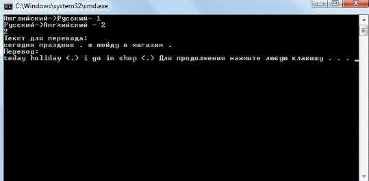 Результат работы программы, в случае выбора перевода текста с
