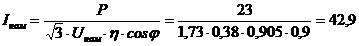 - номинальная мощность трансформатора, кВА;