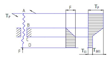эпюры распределения нагрузок вдоль оси винта и устанавливаем опасное сечение:
