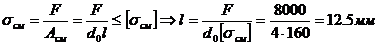 ширину заплечика из условия смятия материала гайки под действием силы F:
