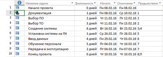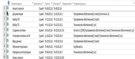 проектом 18.02.2016 - 22.02.2016 гг.; 5. занесение данных в MS Project