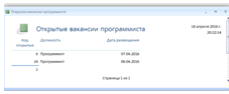 «Открываемые вакансии» появляется форма «Работодатели - вакансии»