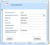 строке Код соискателя, открывается на выбор список соискателей (Поля: ФИО,