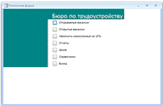 трудоустройству». Главная кнопочная форма создается с целью навигации по базе