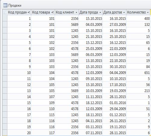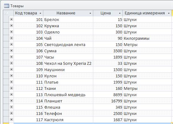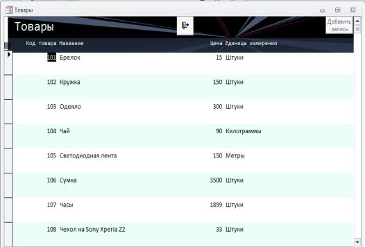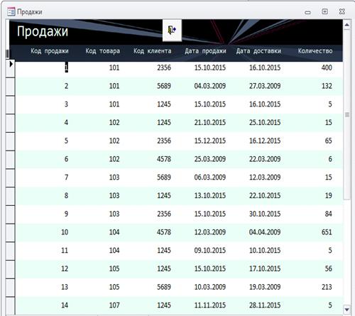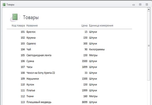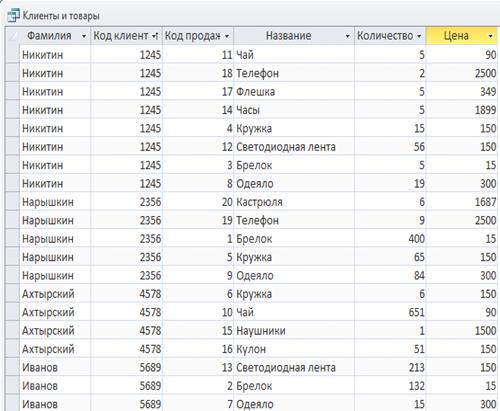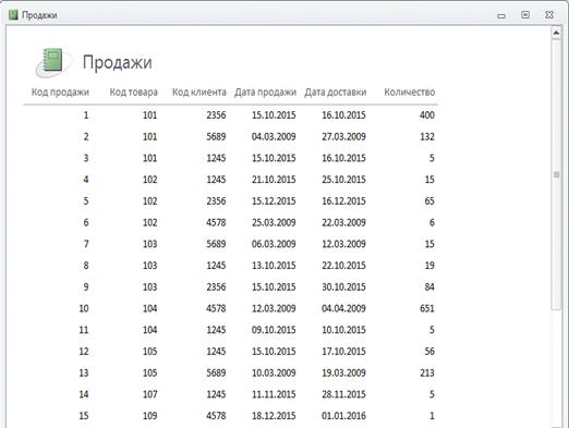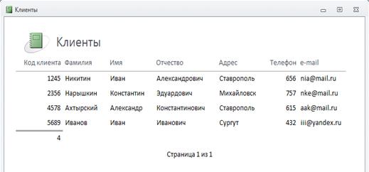 набор данных в табличном режиме. На основе запроса можно создать отчёт или