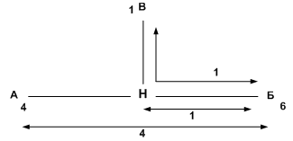в точке Б относительно точки А:
