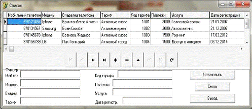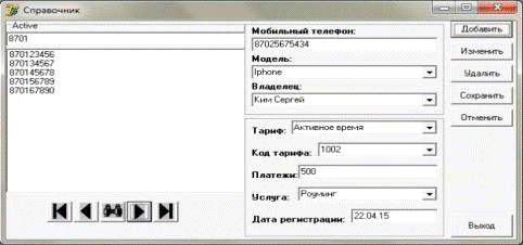 компании, предоставляющей услуги мобильной связи в приложении Microsoft Access.