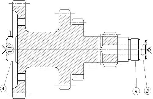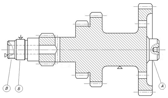 має такі дефекти: знос шийок А і Б, знос різьби В. Основними причинами