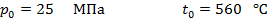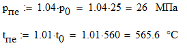 начального давления и температуры пара перед турбиной (р0, t0), давления и температуры промежуточного перегрева
