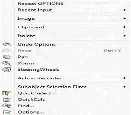 Контекстное меню командного режима появляется при нажатии ПКМ