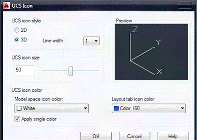 Пиктограмма WCS размещается в левом нижнем углу.