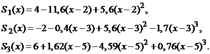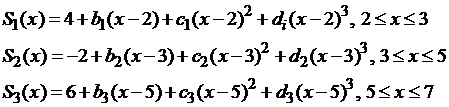 с тремя сплайн-функциями: