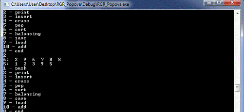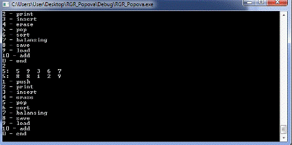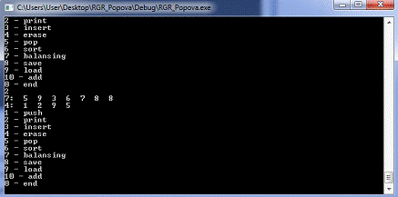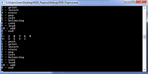 должна реализовывать указанные выше действия. Протестировать структуру данных.
