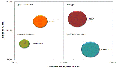 (низкий темп роста рынка, низкая относительная доля рынка), другой - высокие