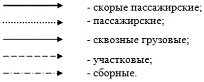 графика движения поездов следующие: техническая скорость Vтех =54,9 км/ч; участковая скорость Vуч