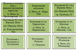 Рисунок 10 - Перечень промплощадок ООО «Интинская тепловая компания»