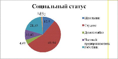 социальный статус: o Школьник o Студент o Домохозяйка o Частный предприниматель o Работник o Безработный o Пенсионер
