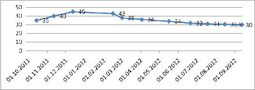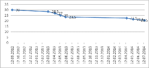 рефинансирования. Затем ставка процента постепенно начала снижаться и в 2013