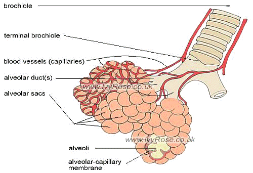 alveoli), that is connected to its terminal bronchiole via an alveoli duct. Also