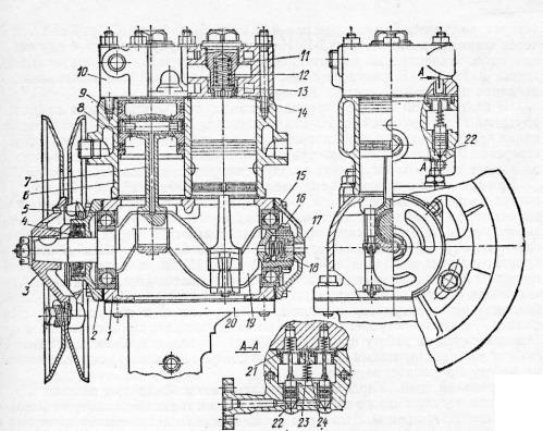 Основные детали компрессора следующие: блок цилиндров, головка блока, картер,