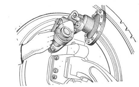 • Установить фланец с тормозным барабаном на