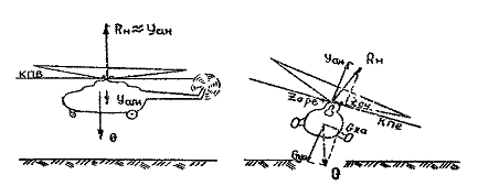 вследствие несимметричности аэродинамической схемы вертолета на левом и правом