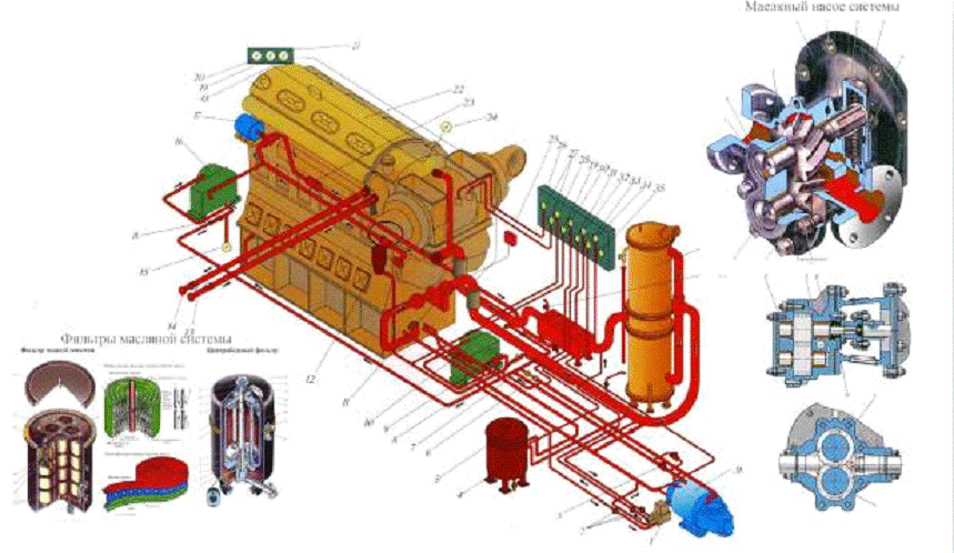 подачи масла к трущимся деталям дизеля, для поддержания жидкостного трения,