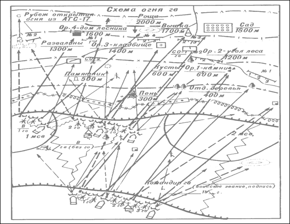 основные и запасные огневые позиции огневых средств и боевой машины пехоты