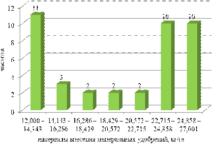 вариационный ряд внесения минеральных удобрений (кг/га)