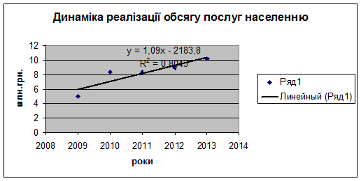 динаміки реалізації виробничих послуг населенню за 2009 - 2013 рр. визначте: 1)