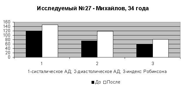 %. АД диастолическое возросло у Шутовой на 97 %, Михайлова – на 57 %,