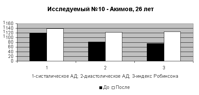 АД диастолическое возросло у Чиндарева на 41 %, Акимова – на 52 %, Утина – на