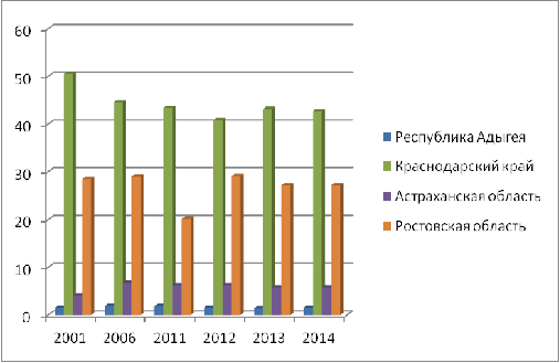 лидирующее место занимает Краснодарский край. Это в большей степени связано с