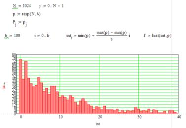 гістограму експоненційного закону. Для цього було задано кількість випробувань,