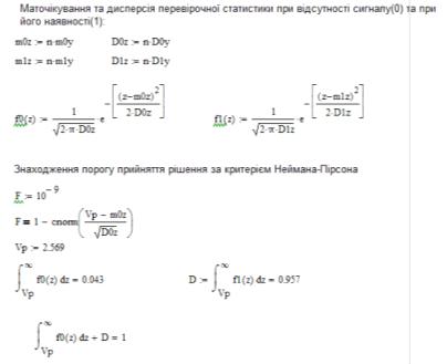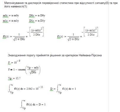 сигналів вибирають при розрахунках відповідно до критерію Неймана-Пірсона так,