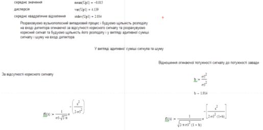 розподілу і розраховано вузькополосний випадковий процес на вході детектора