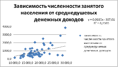 Зависимость численности занятого населения от различных социально-экономических факторов в различных субъектах Российской Федерации