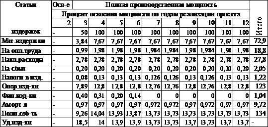 составляющих проекта. Производство должно быть оценено в потребностях в сырье,