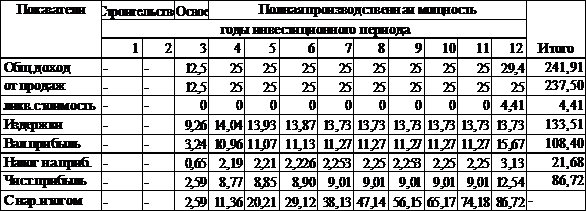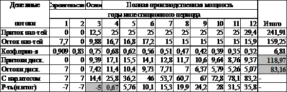 производства. Отметим, что данные показатели дисконтированы, что особенно важно