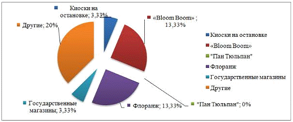 цветочные отделы, которые арендуют помещения в торговых центрах;