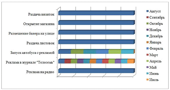 привлекательной цене) и график рекламных сообщений и бюджет рекламы, который